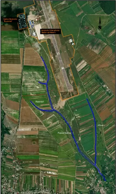 - Reabilitarea canalului de evacuare a apelor pluviale de pe platforma aeroportului;