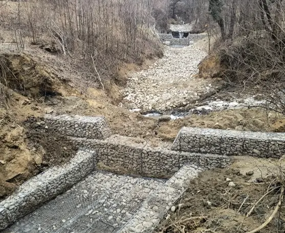 - Construcția de praguri și baraje din gabioane, care consolidează malurile și previn eroziunea regresivă;