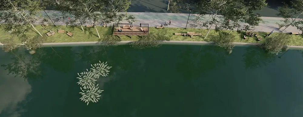 Propunerea presupune înlocuirea sau consolidarea apărărilor de mal existente, folosind soluții prietenoase cu mediul – palplanșe sintetice – asigurând astfel stabilitatea malurilor. Contextul creat deschide calea către reamenajarea malurilor, prin crearea de zone de parc și trasee ciclo-pietonale, alcătuind o zonă extinsă de promenadă pe conturul celor trei lacuri. De asemenea, proiectul abordează și posibilitatea implementării unui sistem de transport public pe apă, oferind o alternativă de conectivitate locuitorilor din zonă.